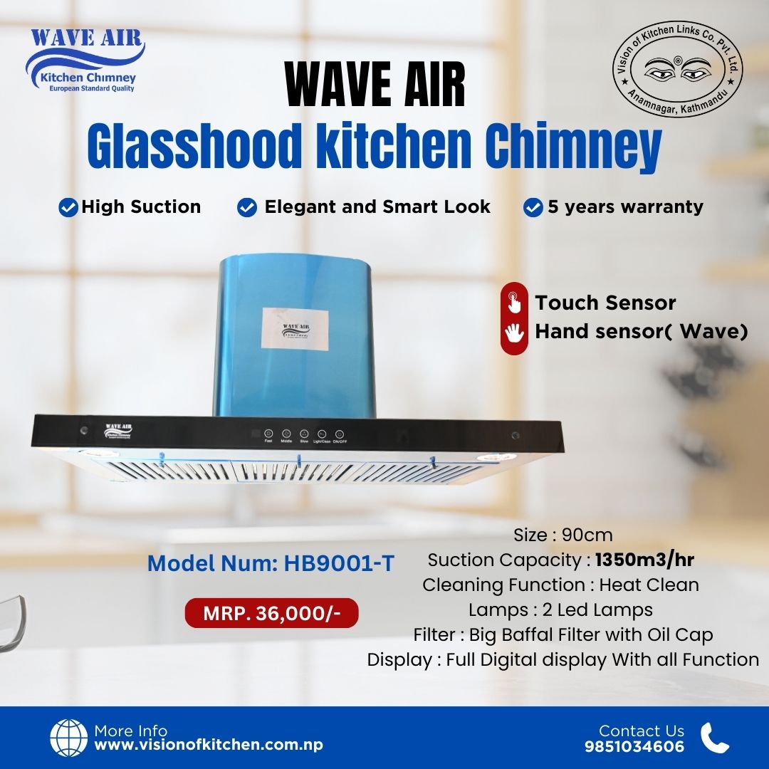 Wave Air Glass Hood Kitchen Chimney-Model Num: HB9001-T